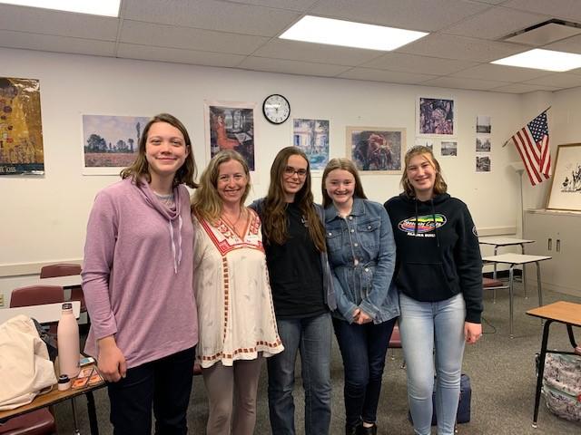 Local author Laura Resau visited Rocky on March 6 to share her insights on writing with members of one of Rocky's student book clubs. The group recently read Resau's novel The Lightening Queen, which tells the story of a Mixteco boy and Romani girl who become friends in spite of cultural differences. Pictured are: Sarah Krohn, Laura Resau, Emma Cailene, Josephine Armstrong and Estelle Venable. Group sponsor is Amy Otteman-Freeman.